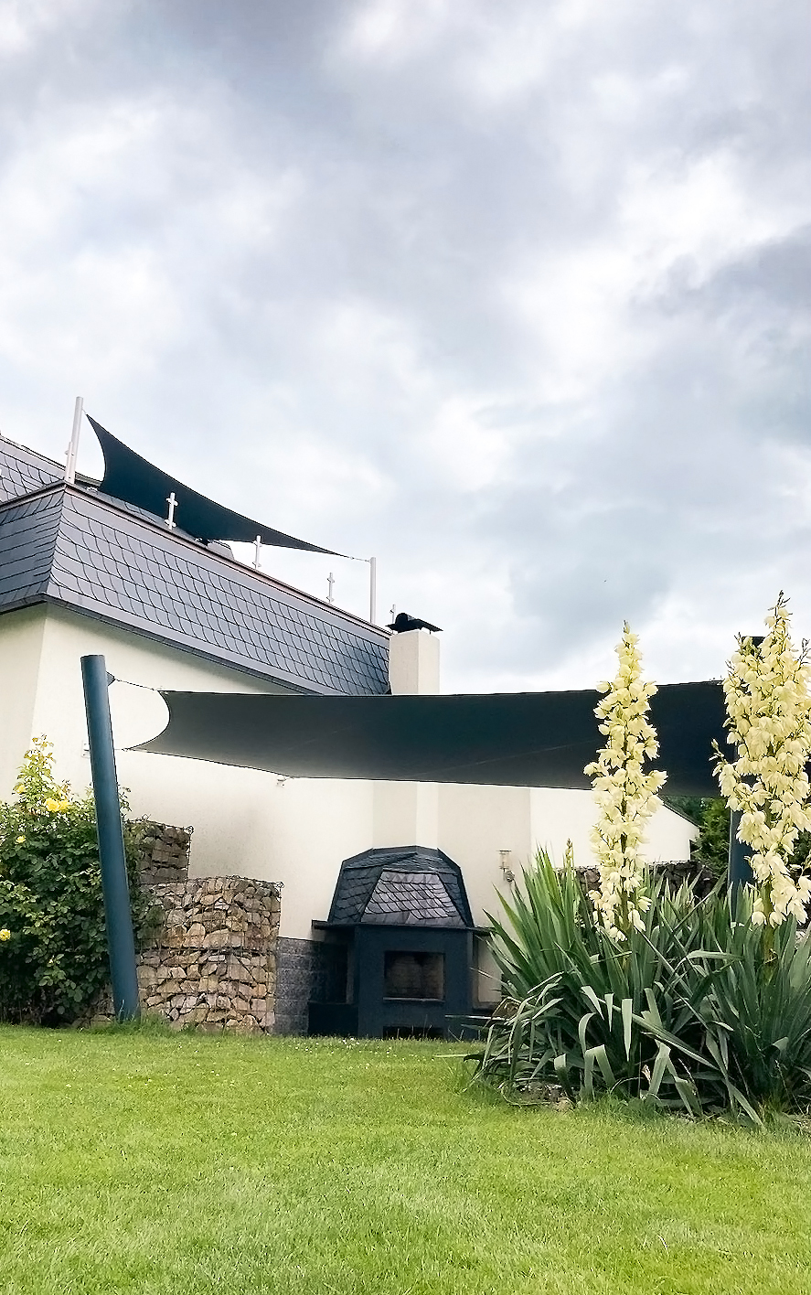 Unsere Sonnensegel sind individuelle Einzelstücke, die mit moderner Technik und jahrelangem Know-How in der handwerklichen Fertigung entworfen, konstruiert und umgesetzt werden.