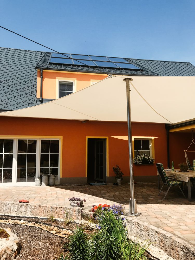 Our Seasonal Sails are perfect for the summer months. They are statically calculated considering arising wind loads. In the winter months the Seasonal Sails are dismantled and stored.